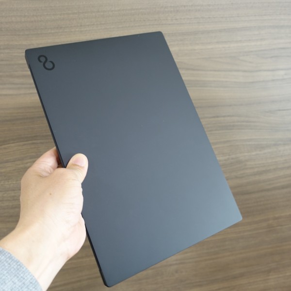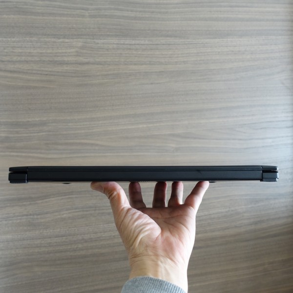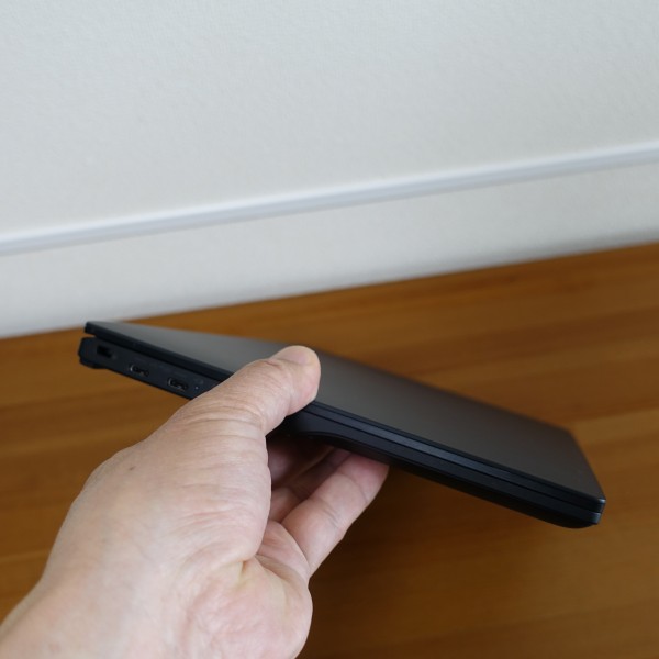 689gしかないのでものすごく軽いです。初めて持ったら、ちょっとびっくりすると思います。一般的な14インチノートだと1.4kg程度の重量があるモデルが多いので、比べると圧倒的な軽さを実現しています。