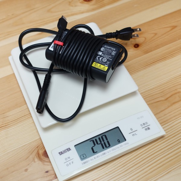 ACアダプタと電源ケーブルの合計重量は240g。