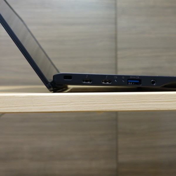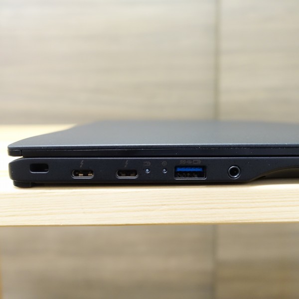 Type-C端子は2つともDisplayPort/PowerDelivery/Thunderboltに対応。対応するモニタにType-C端子経由で接続すれば、外部映像出力と同時に充電も実行できて便利です。