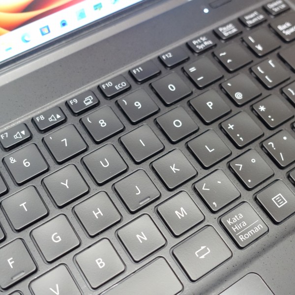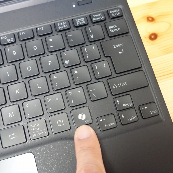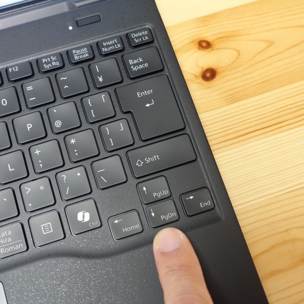 キーストローク(キーを押し込む深さ)はモバイルPCとしては深めの約1.5mm。 キーを強く押すとちょっとボディがたわみますが、僕はあまり強く押さない方なので、タイピング時にあまり気になりませんでした。
