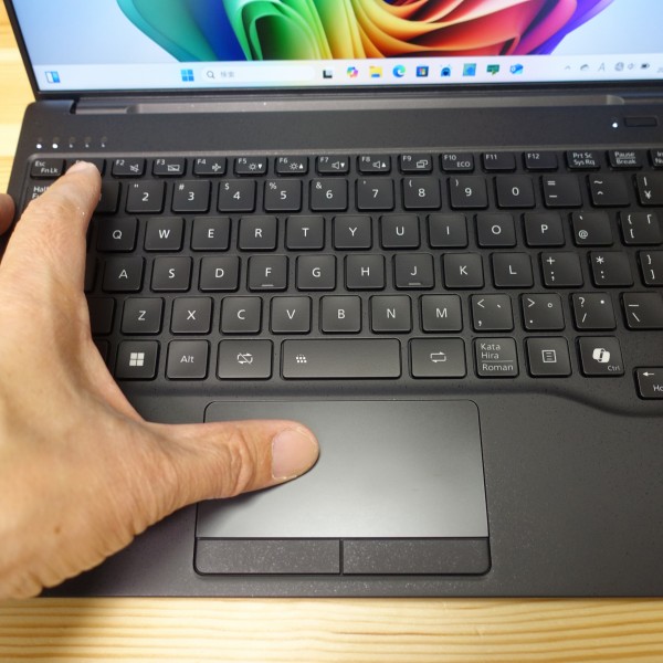 クリックボタンも押しやすく、軽く押すだけで反応してくれます。 誤動作はほとんどなくストレス無く使えます。 押したときの感触はやわらかめでクリック音もそれほど大きくはありません。 キーボード/タッチパッドにこだわる富士通製PCらしく、操作しやすいと思います