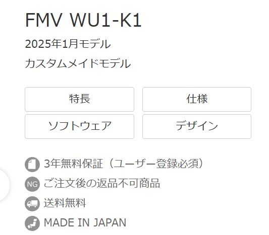 FMV WU1-K1 (直販モデル) (2025年モデル) |