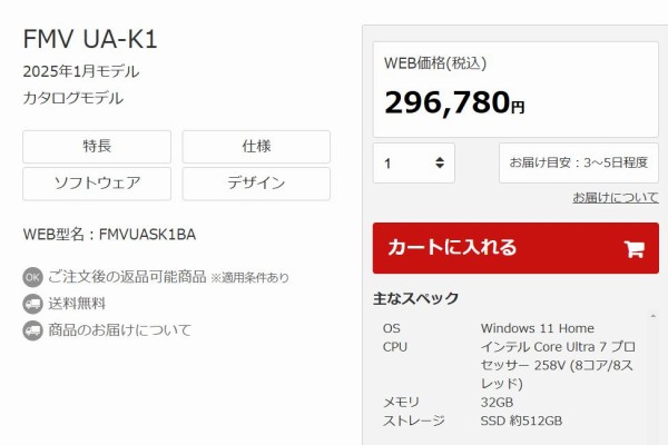 | モデル | FMV UA-K1 (店頭モデル) (2025年モデル) |