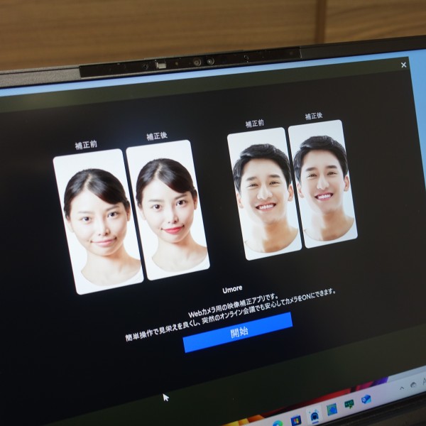 Umoreという映像補正アプリが同梱されており、 カメラ使用時の見た目の印象を良くすることができます。