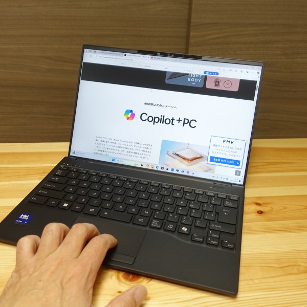FMV Note U(FMV UA-K1(店頭モデル)/FMV WU1-K1(直販モデル))は、Copilot+PCに対応した14インチノートPCとして世界最軽量の約848gを実現したPC。