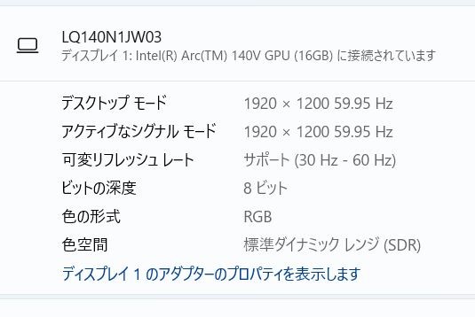 | ディスプレイ | 14.0/縦横比16:10 (ノングレア液晶 / 1920×1200ドット/ 1677万色 ) |