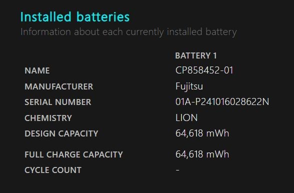 バッテリ駆動時間を計測。レビュー機のバッテリ容量は64Wh。