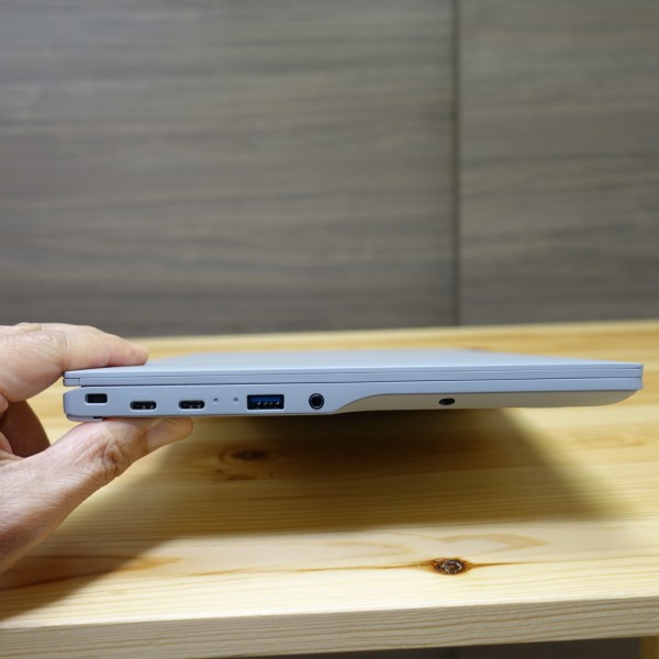 14インチPCとしては非常に軽量なので、実際に持ってみるとやっぱり軽いです。この軽さなら、常時持ち歩くのも苦にならなさそう。高い機動性を確保できると思います。外に気軽に持ち出せます。PCを持ち出す機会の多い方にとって、この軽さは非常に魅力的だと思います。