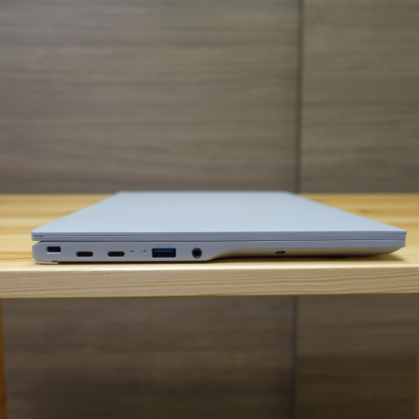 左側面部。USB Type-C×2、ステータスランプ、USB Type-A、マイク/ヘッドホンコンボ端子を配置。USB端子はType-Aが2個とType-Cが2個の合計4個搭載しています。