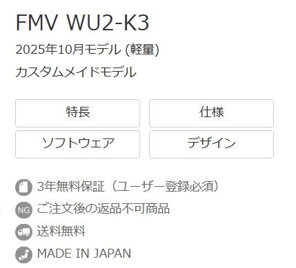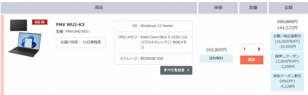 FMV WU2-K3にシークレットクーポンを適用すれば、通常価格よりも割引されるお得なキャンペーン実施中です(今回のクーポンは当サイト向け特別クーポンです。クーポンの割引率が変更になったり、クーポンの発行自体が終了する可能性もあるのでご注意ください。また価格コムやポイントサイトでは基本的に活用できないクーポンコードです)。