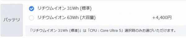 | バッテリ容量 | 63Wh | 31Wh/63Wh |