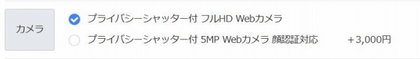 Webカメラは店頭モデルがFHD 対応の約207万画素。直販モデルでは、約500万画素のカメラも選択できます。
