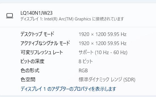 | ディスプレイ | 14.0/縦横比16:10 (ノングレア液晶 / 1920×1200ドット/ 1677万色 ) | |