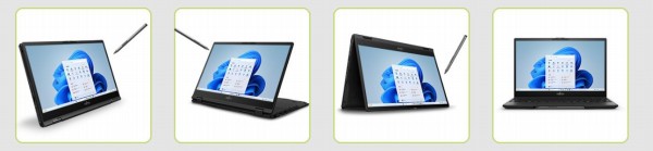 - ペン付属の13.3インチ液晶搭載2-in-1ノートPCとしては最軽量モデルで約850gと軽量