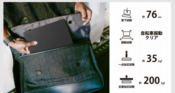 米軍MIL規格、FMV独自の試験に準拠しており、一定の堅牢性を確保しています