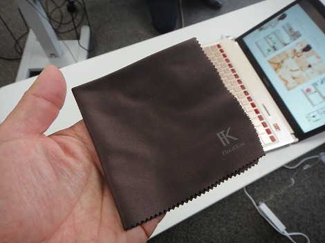 この方がキラキラ感があって女性に受けるのでしょうが、その分、指紋や汚れがつきやすいので、付属の布を使ってこまめに拭き取る必要があります。