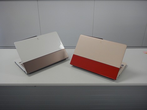若い女性に受けそうなカラーリングが大きな特徴となっています。カラーリングはホワイト/茶(左)と赤/ベージュ(右)の2色を用意。